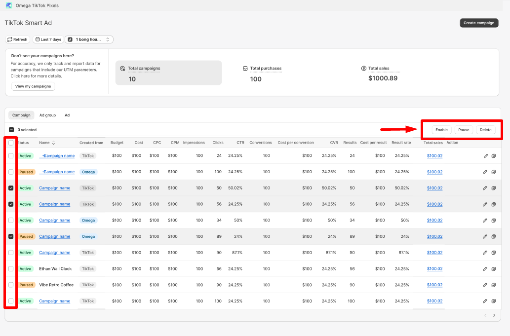 * <mark style="color:red;">**Deleted**</mark> campaigns won't be displayed on ad account anymore and can't be restored.